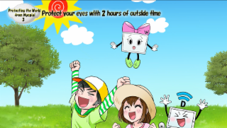 屋外学習を通じて、近視をなんとかしようと取り組む健人やデジたん!たち。それを支えるまさこ先生やデンコク先生。本動画では、近視の進行が発症リスクとされる緑内障や黄斑変性などの目の疾患について周知し、またインターネットから得る情報に加えて、「図書館」というワードを用いて、正確で偏りのない目の健康に関わる情報をつかまえて活かそうというバックサイドストーリーも加えています。児童生徒の多くが端末を日常的に使う一方、放課後は外出せず、動画視聴やゲームをする「おうち時間」の増加がコロナ禍以降みられます。この動画をもとに、端末の適正使用と、近視の進行予防のカギとなる屋外活動について、家族や友人と話し合っていただきたく思います。
